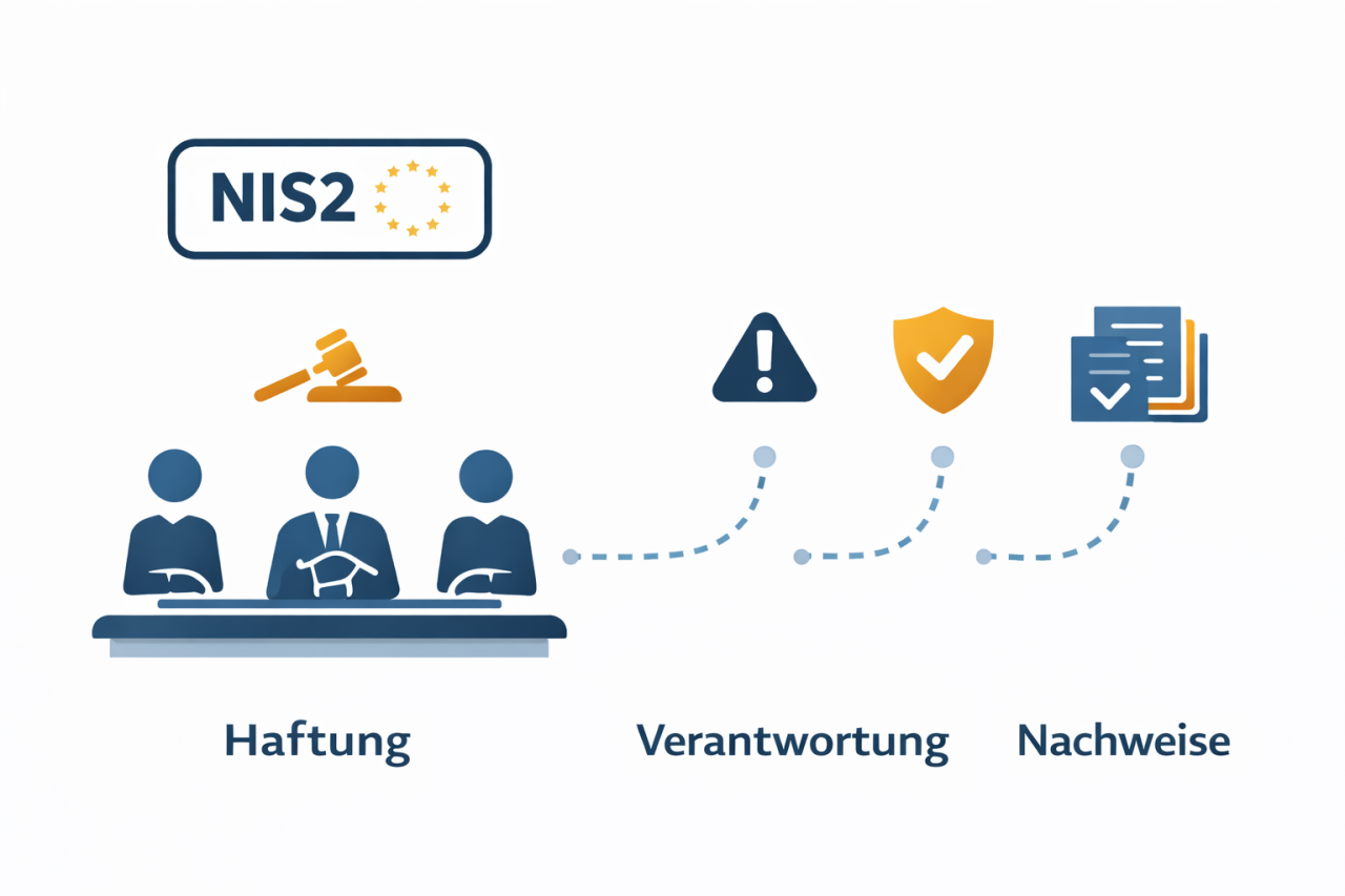 Genau hier entstehen typische Reibungen. Auf der einen Seite will die Geschäftsleitung keine zusätzlichen „Programme“, die den Betrieb lähmen. Auf der anderen Seite will sie nicht in einer Situation stehen, in der ein Vorfall eskaliert, die Aufsicht Fragen stellt oder ein Kunde Nachweise fordert – und man dann feststellt, dass vieles zwar „gemacht“ wurde, aber nicht sauber als Verantwortung, Entscheidung und Evidenz zusammenläuft. Das ist der eigentliche Kern: NIS2 verlangt nicht, dass Vorstände plötzlich technische Spezialisten werden. NIS2 verlangt, dass Verantwortung so organisiert ist, dass sie im Betrieb funktioniert und im Zweifel auch nachweisbar ist.